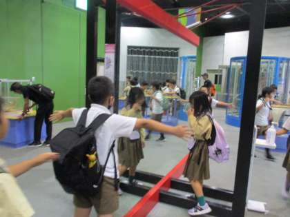 展示コーナーでは、班の友だちと仲良く、不思議な体験をしたり、おもしろい体験をしたりして、とても充実した1日でした。