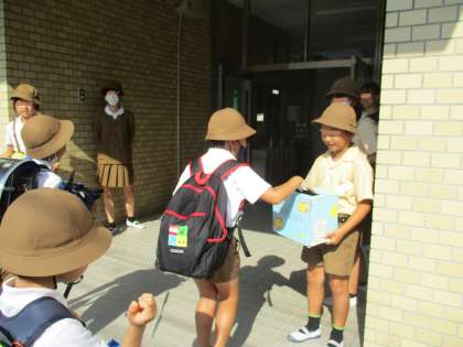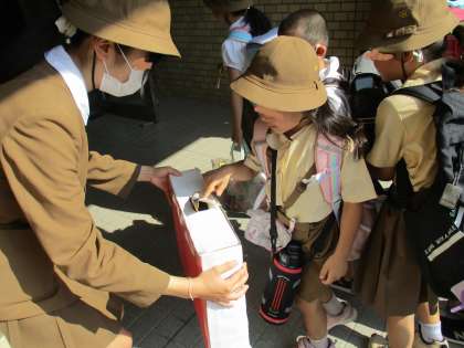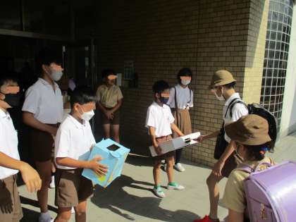 10日月曜日の朝会でユニセフについての説明をし、11日火曜日と12日水曜日の朝に正門前で募金活動を行いました。