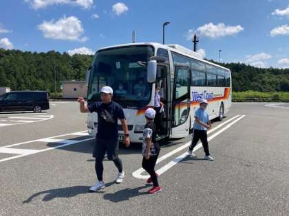 高速道路を降りて、現地まで最後のトイレ休憩です。バスは順調に進んでいます。ハチ高原まであと1時間ほどです。