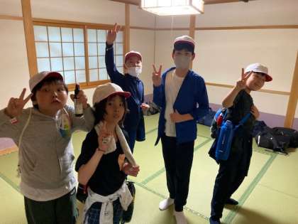 部屋に入って荷物整理をした後は、万一の時に備えて、避難訓練をしました。