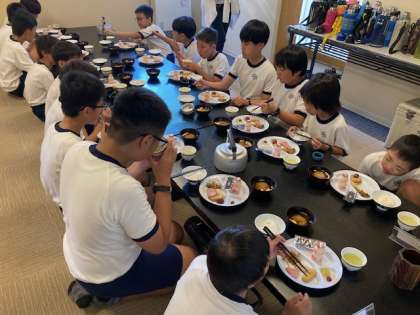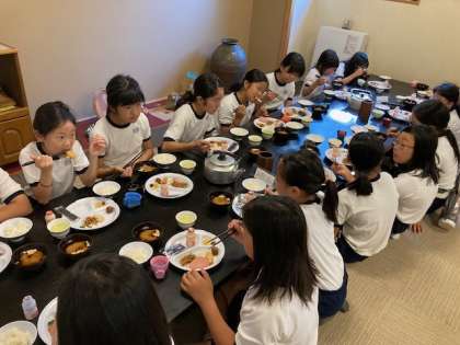 朝から元気いっぱいで、子どもたちは食欲旺盛です。何度もご飯、味噌汁をおかわりしていました。