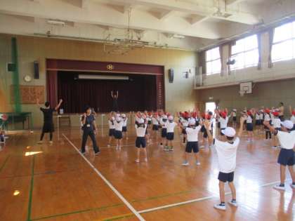 1・2年生は運動会のダンスの練習を講堂でしていました。