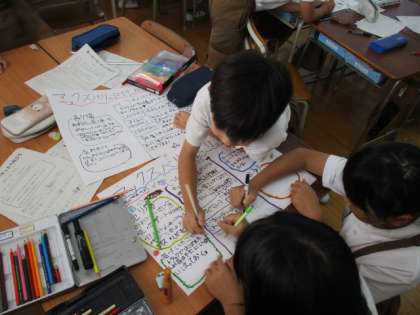 3年生は社会見学(スーパーマーケット)のまとめをしていました。