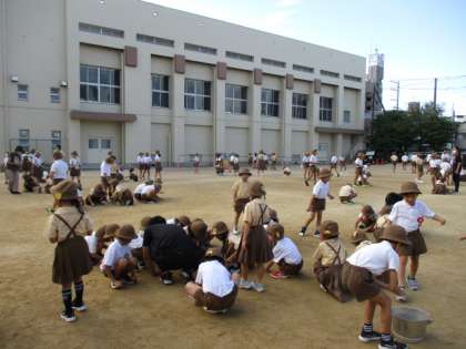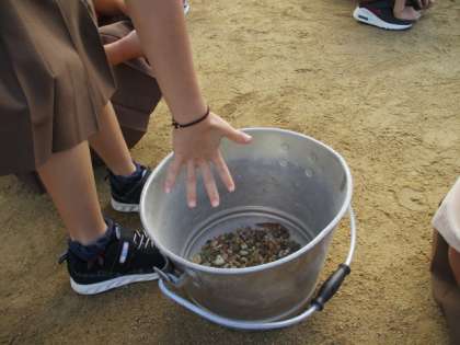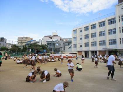 運動会に向けて、朝会の終わりにみんなで、運動場の石拾いをしました。