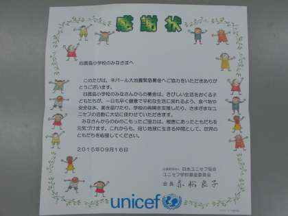 代表委員会で集計し、合計9568円をユニセフ協会に送らせていただきました。