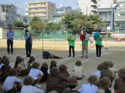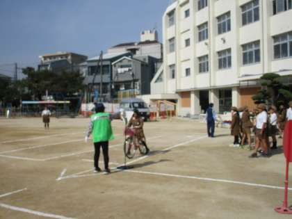 1〜3年生は歩行者の歩き方、4〜6年生は自転車の乗り方を学びました。