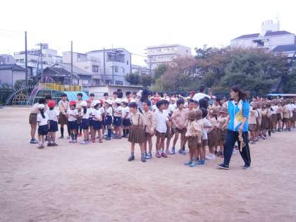 なわとびタイムのあとは、明日の全校遠足に向けて、ペア学年での並び方について確認をしました。