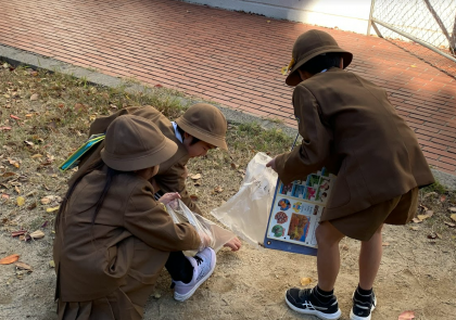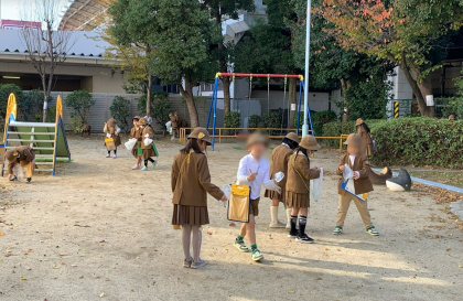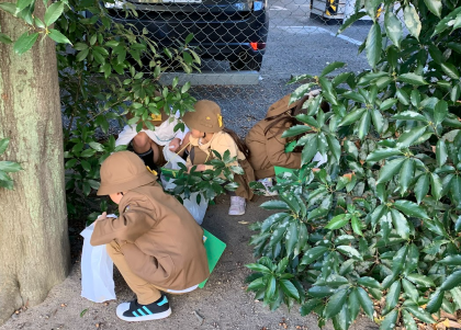 近くの公園に行って、秋みつけを行いました。お気に入りの落ち葉やどんぐりを拾いました。思い思いにいろんな秋を探していました。