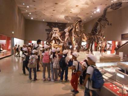 3年生から6年生は、長居公園内にある自然史博物館で見学をしました。恐竜などの巨大な骨を見て、ビックリしました。