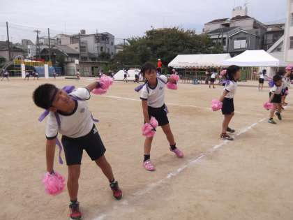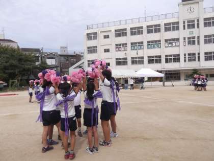 団体演技の1曲目は「走れ!」です。もともとは誰かを想う気持ちを込めた歌です。何かに向かって,全力で走り続け,頑張る姿を運動会で見てください。