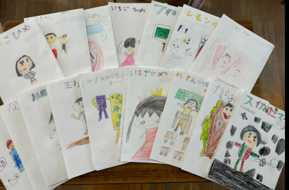 国語科「おはなしをかこう」の授業で、「桃太郎」をもとにして自分だけのお話をつくりました。とても面白くて素敵なお話がたくさん完成しました。
