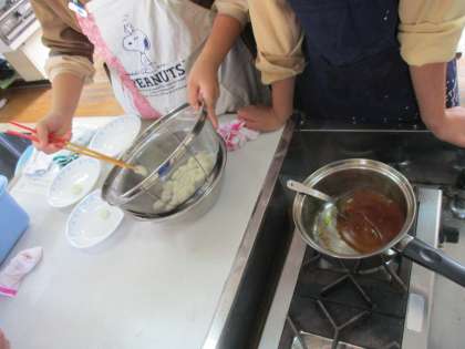 みたらしのたれをつくりました。こげないように、よく混ぜて、、、