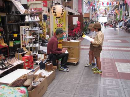 11月5日(木)に、四貫島商店街で「一日店長さん」をします。今日は、各店舗にあいさつに行きました。
