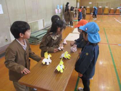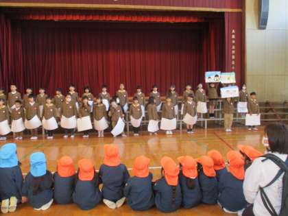 幼稚園との幼小交流会がありました。講堂で交流をしました。