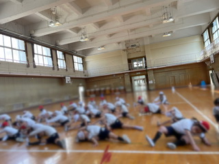 体育の学習で、体ほぐしの運動をしました。「先生、見て見て。」と体の柔らかさを見せてくれました。