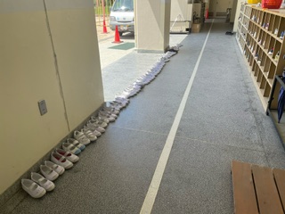 発育測定では、上靴をきちんと並べて、礼儀正しい2年生で感心しています。