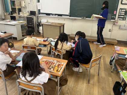 梅香中学校から中学生が職場体験に来ました。「中学校でどんなところ?」「一緒におにごっこしよう!」「勉強教えて!」と、小学生とたくさん関わりました。今日、明日の2日間、職場体験を行います。
