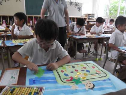 運動会も終わり,今週は学校に静けさが戻ってきました。どの学年も教室で学習に打ち込んでいます。1年生は図工で「たからものをさがしにたんけんしよう!」を作りました。宝物箱の中には、自分の秘密の宝物を描きました。