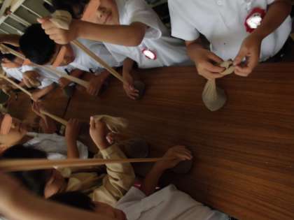地域の方に来ていただき、しばにんぎょうを作りました。