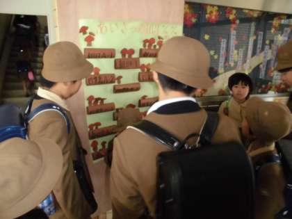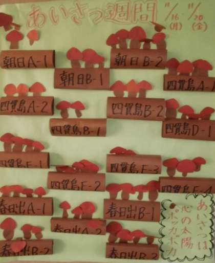 気持ちのいいあいさつができている班はキノコのシールがもらえます。