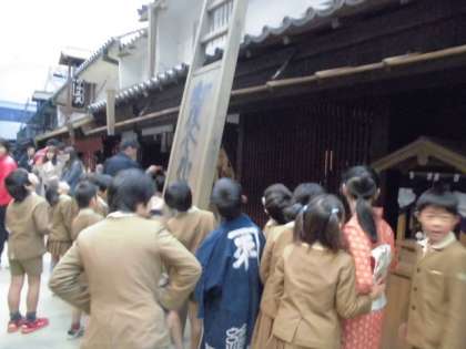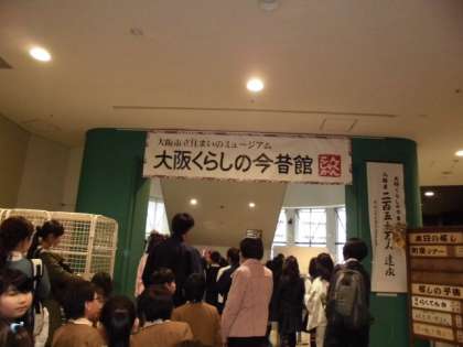 社会見学で天満にある「くらしの今昔館」に行きました。昔の町並みや、道具など、様々な体験をしました。