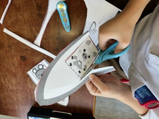 紙を切ったり折ったりし、息を吹きかけて動く「ふーふーヨット」を作りました。