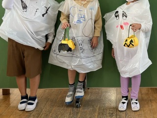 「かぼちゃに羽つけるねん!」「みて、目いっぱい書いた!」とオリジナルを加えて作っていく子どもたちです。中は紙コップなので、早速ペン立てにしてる児童もいました。