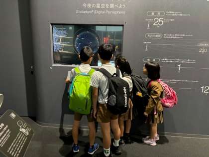 まず、プラネタリウムを観ました。月や星の動き、星座などを解説をしてもらいながら、学習しました。