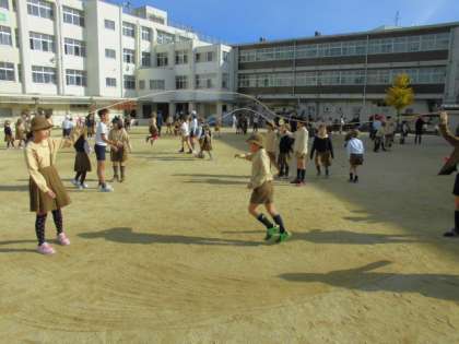 10月は学年別、11・12月はたてわり班ごとに跳びました。
