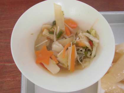 また,給食の具材では,人参や大根などを星型やハート型などに切り取り,彩りだけでなく,形でも子どもたちをいつも楽しませてくれています。