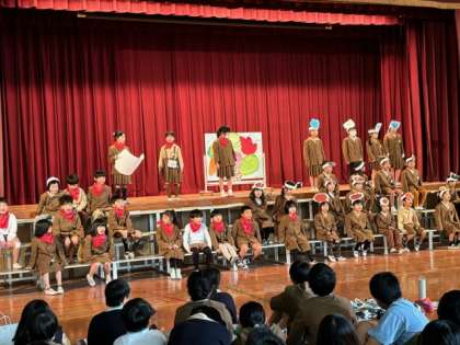 明日、たくさんの学年の子どもたちの発表の様子をご覧ください。席はたくさん準備しております