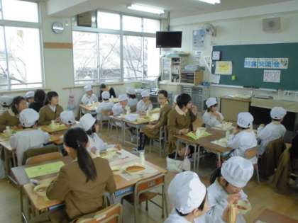 椅子取りゲームや、連想ゲームなどを高学年が計画してくれ、楽しい給食交流会になりました。