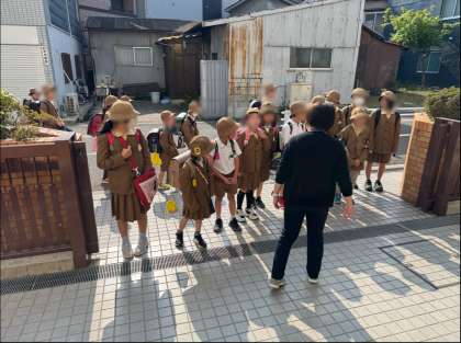 後ろを気にしてゆっくり歩いたり、優しく声をかけたり、最高学年としての自覚が感じられます。
