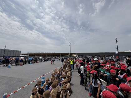 玄関ゲートで少し待ちましたが、大屋根リングにのぼり、お昼も終えパビリオンやその他の散策を楽しんでいます。