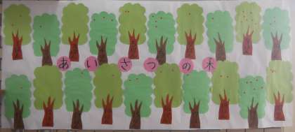 今日から始まりました、朝のあいさつ運動 !!! 10月21日〜24日の4日間で行われます。代表委員会とあいさつ隊が、元気よく朝のあいさつをします。明るく元気なあいさつで、「あいさつの木」に実がなっていきます。