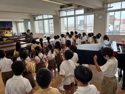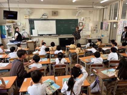 生涯学習でコーラスの指導をされていり脇田先生とはぐくみネットで学校を支えてくださっている柳本さんがゲストティーチャーで来てくださいました。