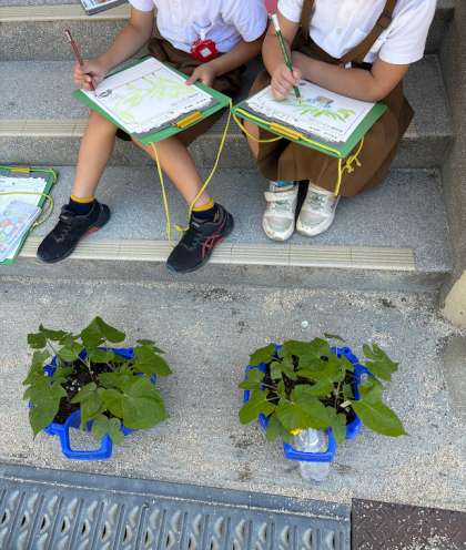 生活の学習では、大きくなった様子を少しずつ成長記録にしています!花が咲くのが楽しみです!