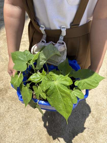 あさがおの種を植えて、約1か月!芽がでて葉が大きくなり、最近は、つるも伸びてきました。毎日子どもたちは、大切に大切に育てています!