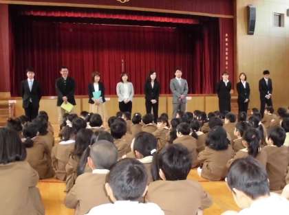 そして、今年度の教職員の紹介がされて、全員勢揃いです。声高らかに校歌を歌っている姿は、1学期のすばらしいスタートを感じさせるものでした。