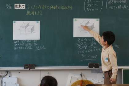算数の「直方体と立方体の体積」の学習では,習熟度別の3分割授業を行いました。