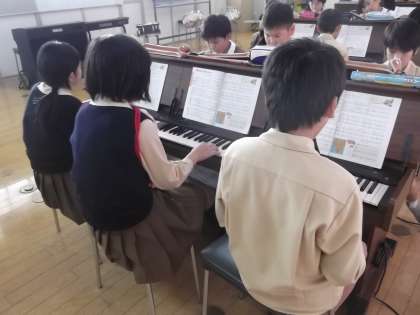 音楽の時間に「キリマンジャロ」を合奏しました。毎週練習しているリコーダーに加え、オルガンも頑張って練習をしています。さらに、小太鼓、大太鼓、シンバル、タンブリンの打楽器も取り入れて合奏しました。なかなか演奏する機会の無い楽器に、子どもたちは目を輝かせて演奏していました。