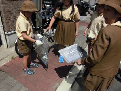 自分たちが住んでいる地域をもっときれいにしようと、前日から高学年が作戦を立て、効率よい回り方や清掃方法を考えました。