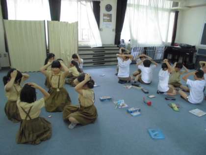 ジャック先生と、歌を歌って体を動かしたり、ゲームをしたりして楽しく英語を学びました。