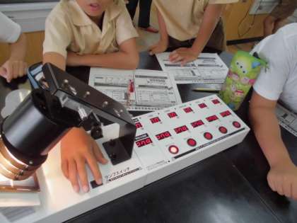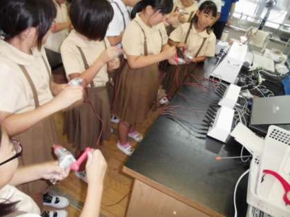 理科の学習で習ったことを実際の太陽電池を使った実験器具で温度やワット数などを測って実験し、分かりやすく説明していただきました。