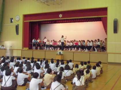 授業の前には吹奏楽部のみなさんが嵐「愛を叫べ」を演奏してくれました。