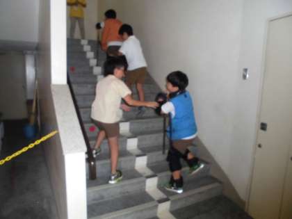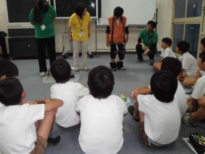 高齢者の方がなぜ、体が動きにくいか、目がみえにくいってどんな感じなのかなど実際に重りをつけて靴を履いたり、階段を上ってみたりした後、くもったメガネをかけてみることで、子どもたちもその大変さがよく分かったようです。