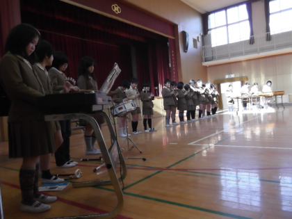 ☆5年生は、一生懸命がんばった運動会やキッズマート、楽しかった林間の感想や3学期の目標、「威風堂々」「キリマンジャロ」「We Wish You a Merry Christmas」の合奏をしました。5年生らしいイキイキとした合奏ができました。