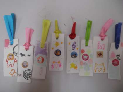 ☆たくさん図書室に来た子にはしおりをプレゼントしています!