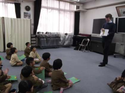 ジャック先生と会ったら、進んで「hello!」と挨拶ができました。