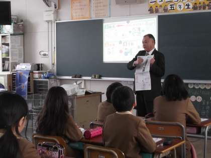 読売新聞、弁理士による知的財産(特許)、大阪ガスエコクッキングの出前授業を熱心に聞く子ども達